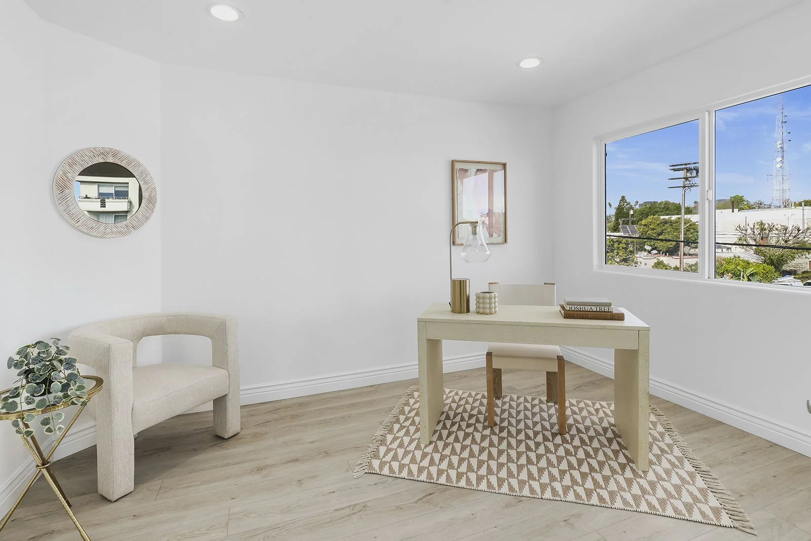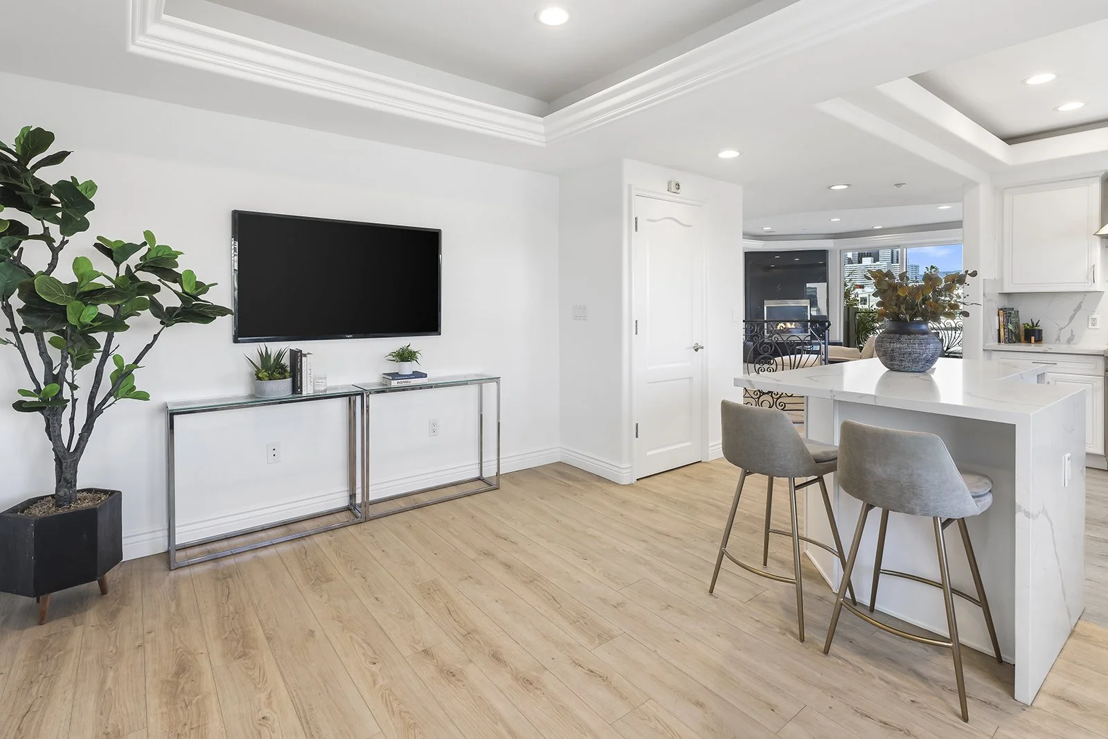 A beautifully remodeled front facing 3 bedroom, 3 bath penthouse with mountain and tree top views in West LA.